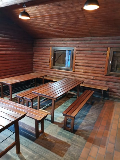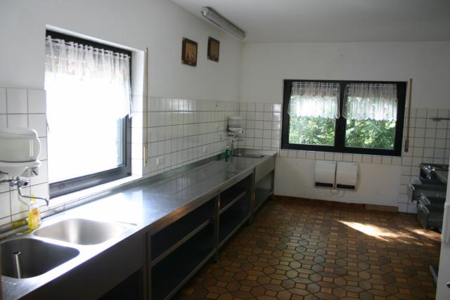 Im Erdgeschoss des Gebäudes befindet sich ein Versammlungsraum mit ca. 40 rustikalen Sitzplätzen. Auf der gleichen Ebene befindet sich eine Küche, in der warme Mahlzeiten zubereitet